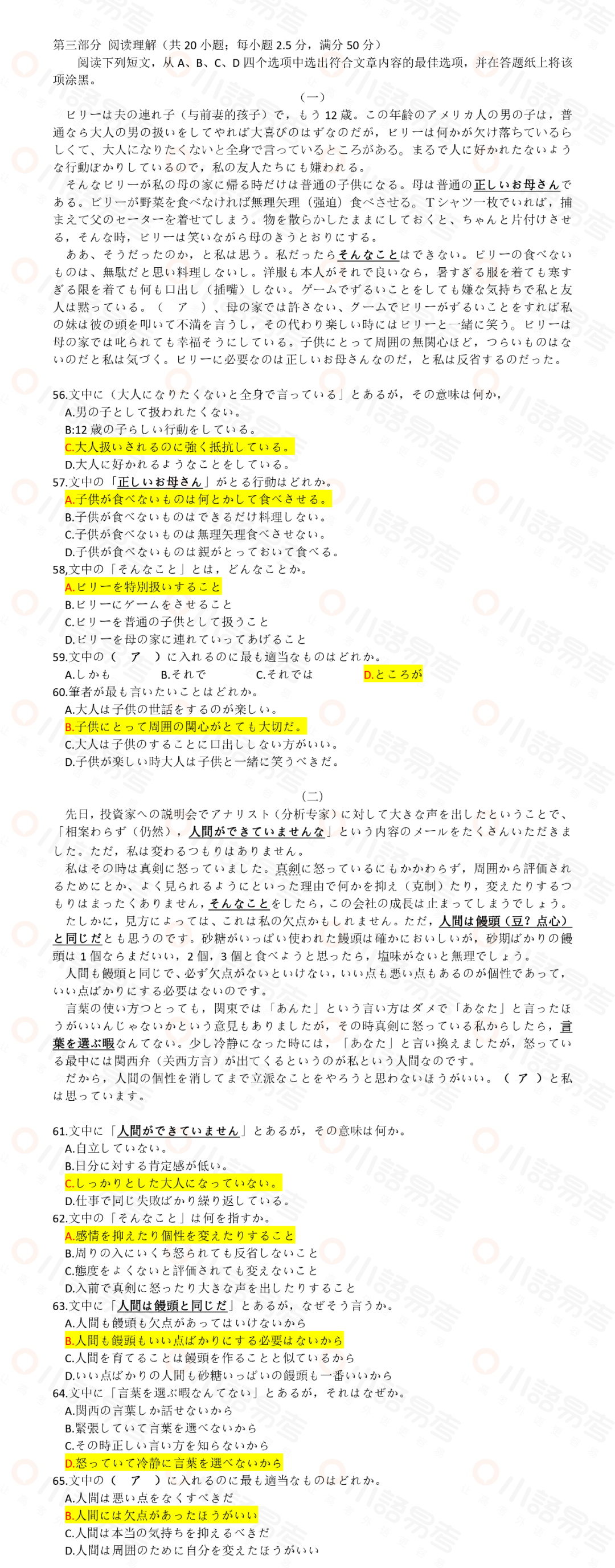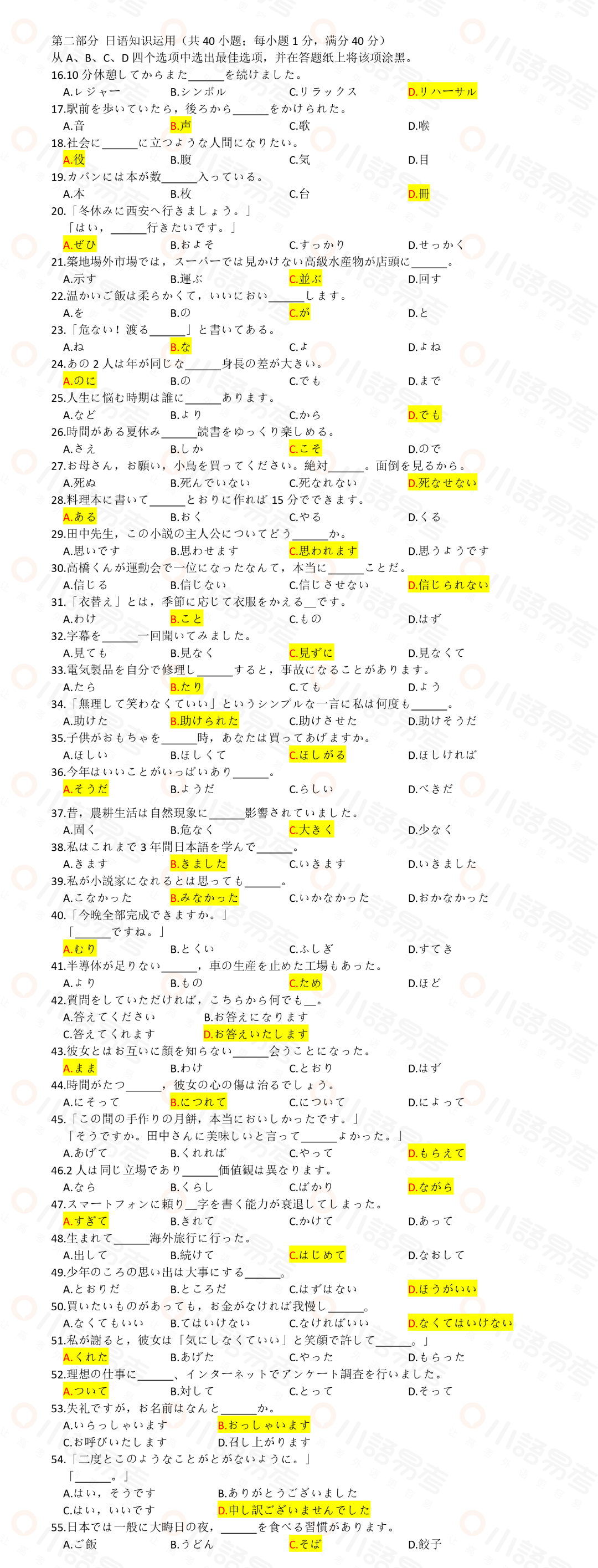 2024年高考日语旧题型真题适用省份:四川、西藏、青海、内蒙古、陕西、宁夏。