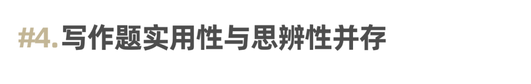 ▶ 写作部分注重实用交际与逻辑表达能力的结合。