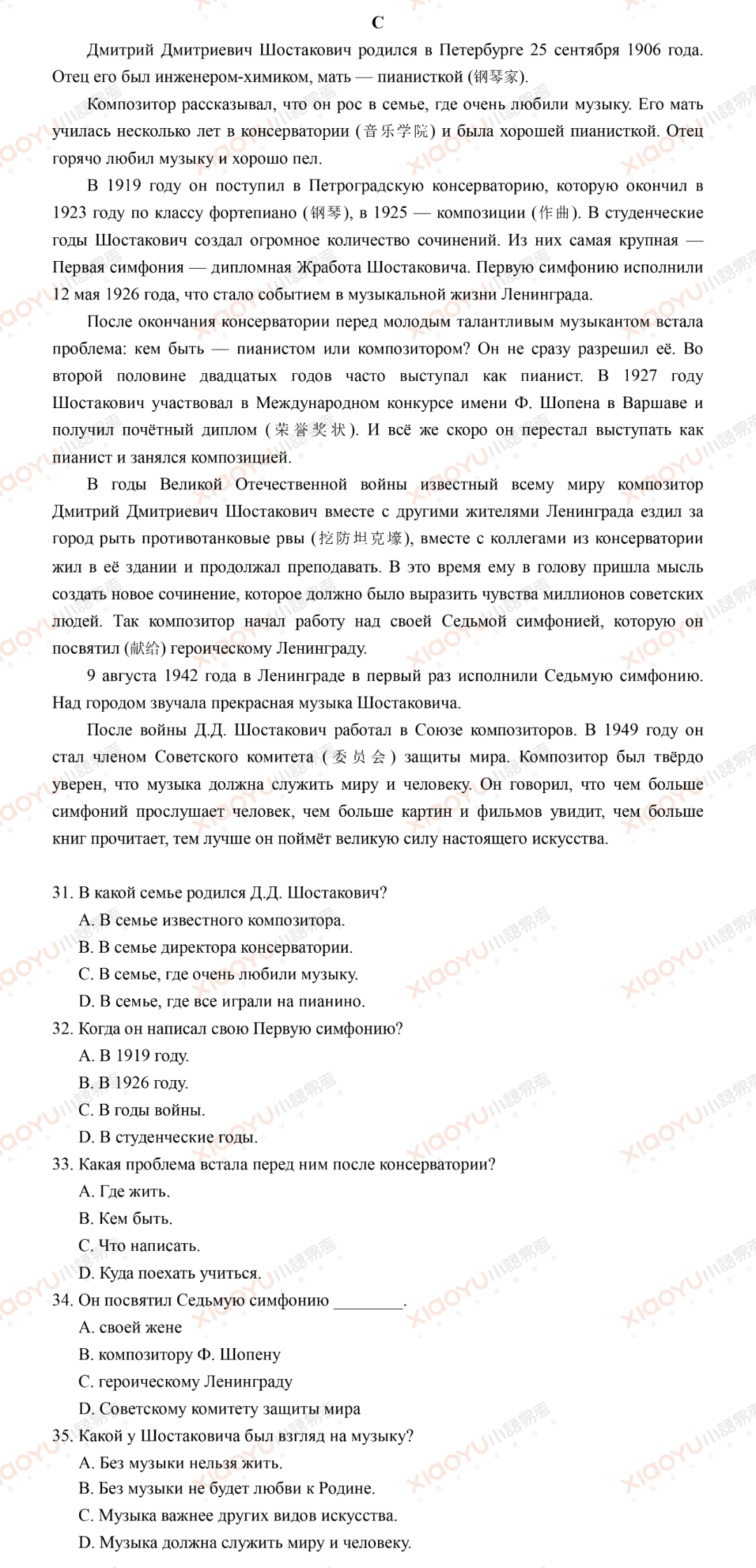 问题35: 肖斯塔科维奇对音乐持什么样的观点?