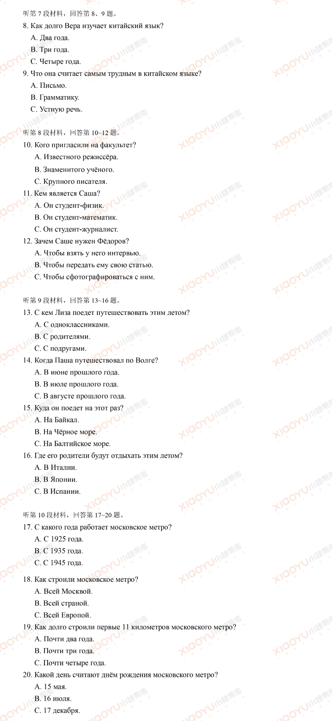 如提及俄罗斯地理(莫斯科地铁、伏尔加、贝加尔湖)、历史人物(肖斯塔科维奇)、节日与大学文化(塔季扬娜日),体现了国家课程标准对跨文化理解能力的重视。